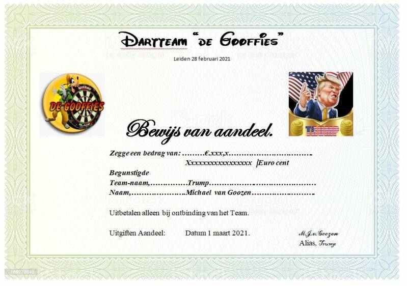 Dartteam de Gooffies deelt aan haar leden aandelen uit 2021.