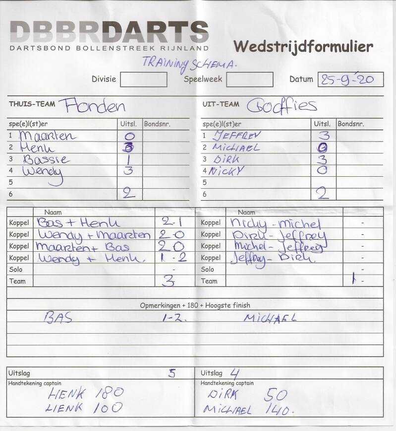Team darten niet gespeeld.
